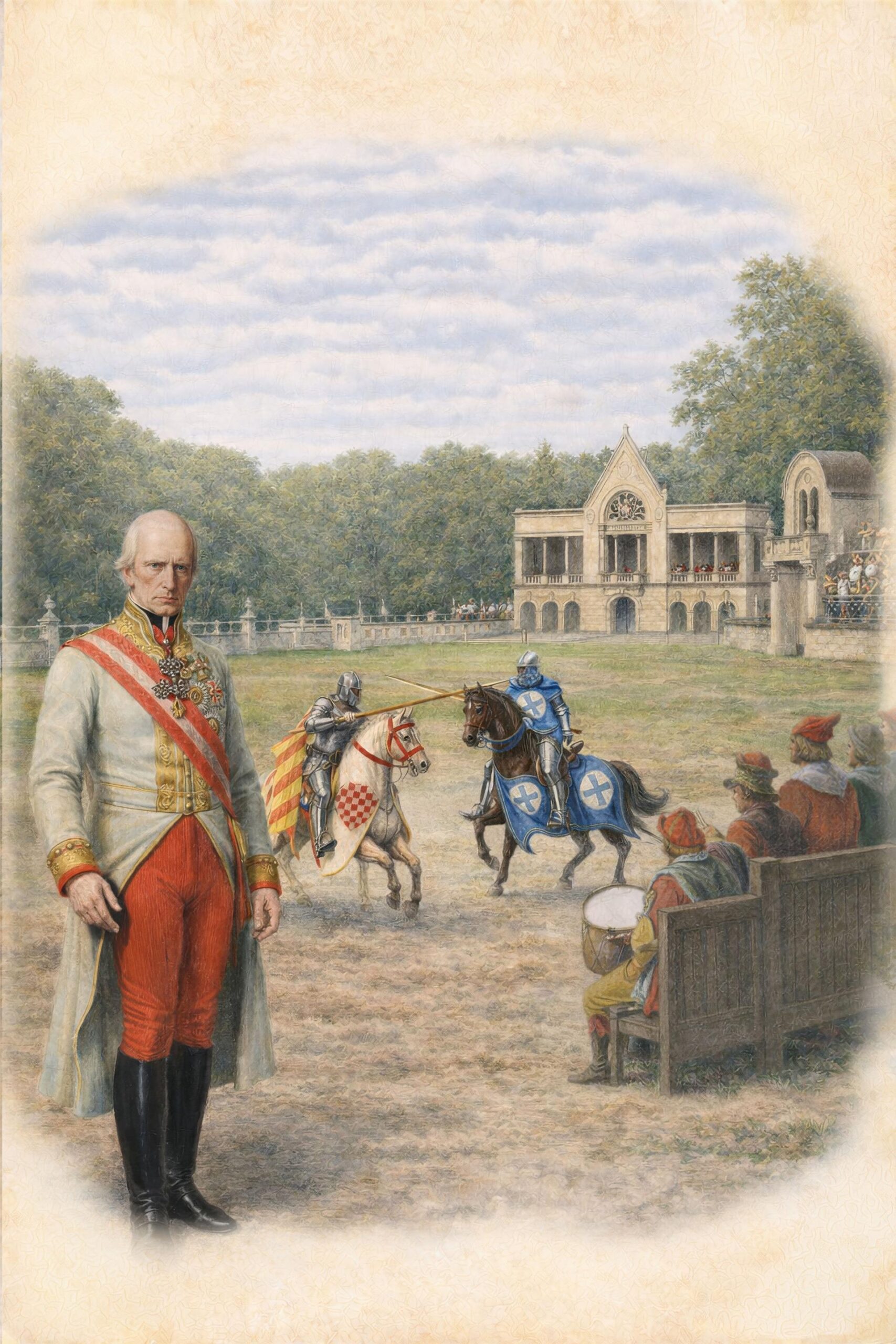 Faszination Mittelalter! Erleben Sie, wie Kaiser Franz im Schlosspark Laxenburg längst vergangene Zeiten wieder aufleben ließ und den Rittergau als märchenhafte Kulisse mit Turnieren, Festen und einer Ritterburg gestaltete. Sie erfahren, warum das „goldene Mittelalter“ zur Zeit der Französischen Revolution und Napoleon wieder in Mode kam und welche Ideen Franz damit verband. So eröffnet sich ein einzigartiger Blick auf eine Welt voller Unterhaltung, Symbolik und mittelalterlicher Fantasie.